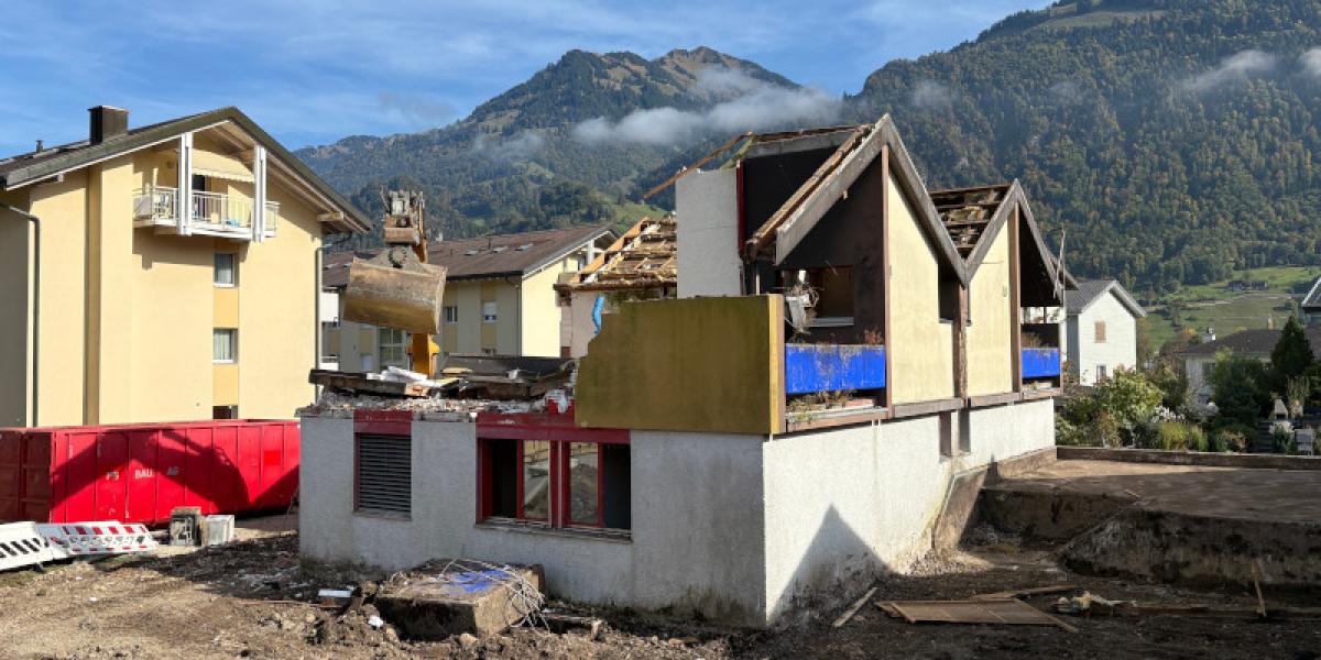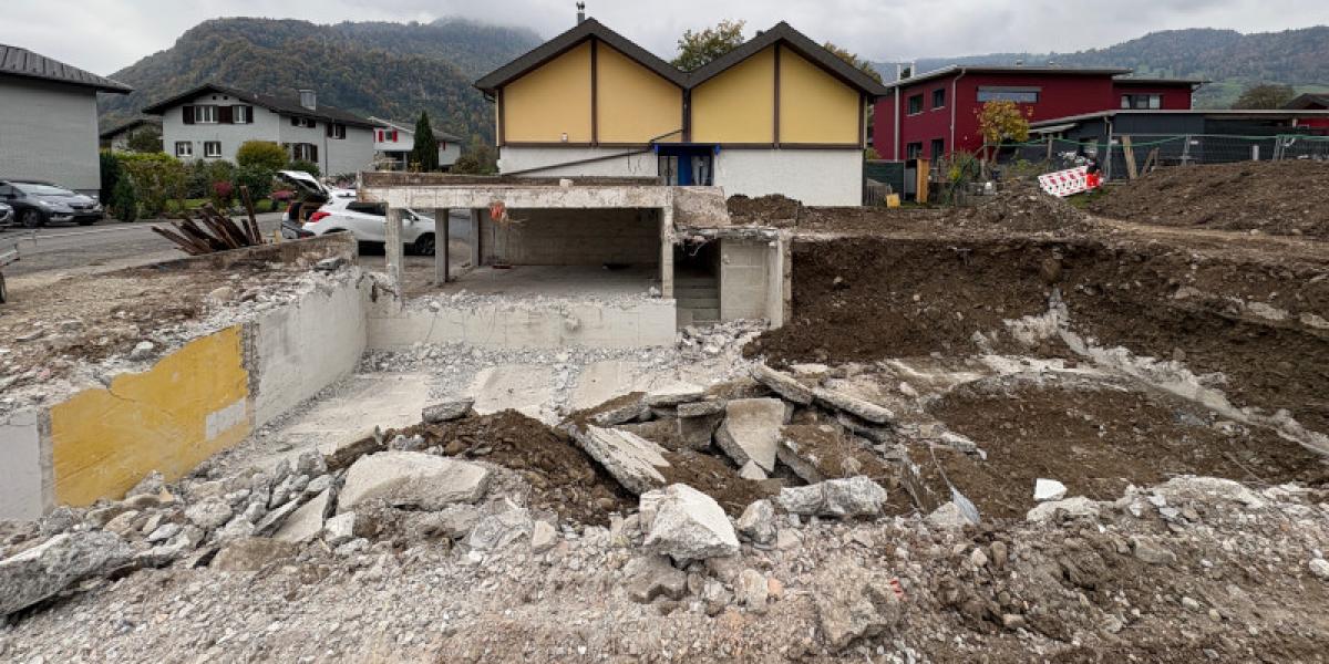 Im Giswiler Grossteil entstehen zwei neue Doppeleinfamilienhäuser mit gemeinsamer Einstellhalle. Das bestehende Doppeleinfamilienhaus mit Garagenzwischenbau wird abgebrochen. Auf dem begrünten Flachdach ist jeweils eine PV-Anlage vorgesehen. Im Untergeschoss der Wohnhäuser befinden sich neben Technik, die Wasch- und Trocknungsräumen, die Kellerräume sowohl auch weitere Räume für Fahrräder. Pro Gebäude ist ein gemeinsamer Technikraum vorgesehen. Die vier Wohneinheiten verfügen über 4 ½ bis 5 ½ Zimmer und einem Wintergarten im Erdgeschoss.